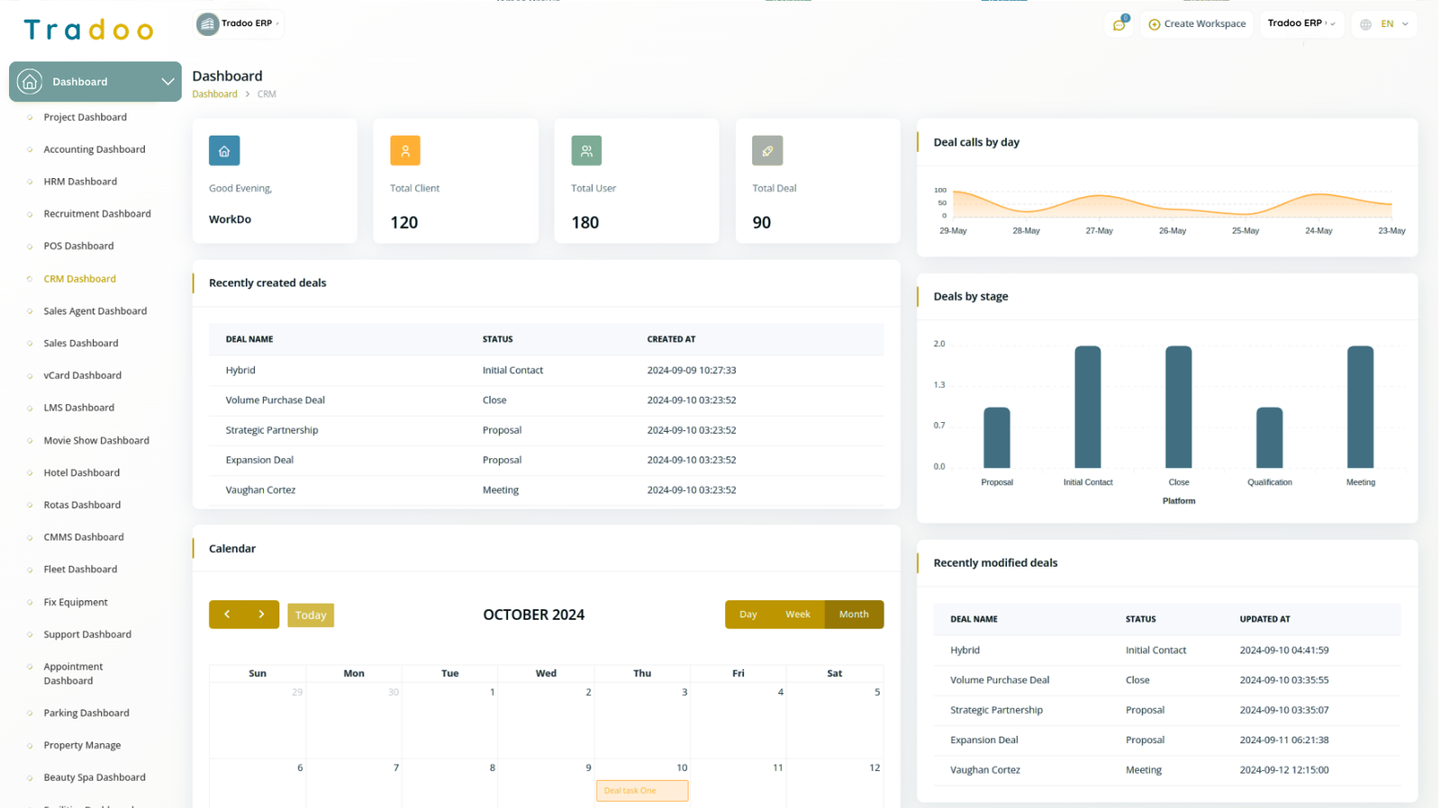 Access all your business data — including leads, deals, invoices, and users — from one centralized dashboard. Visualize key performance metrics and take swift action to boost results.