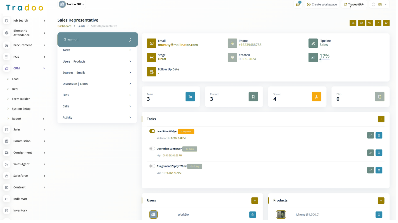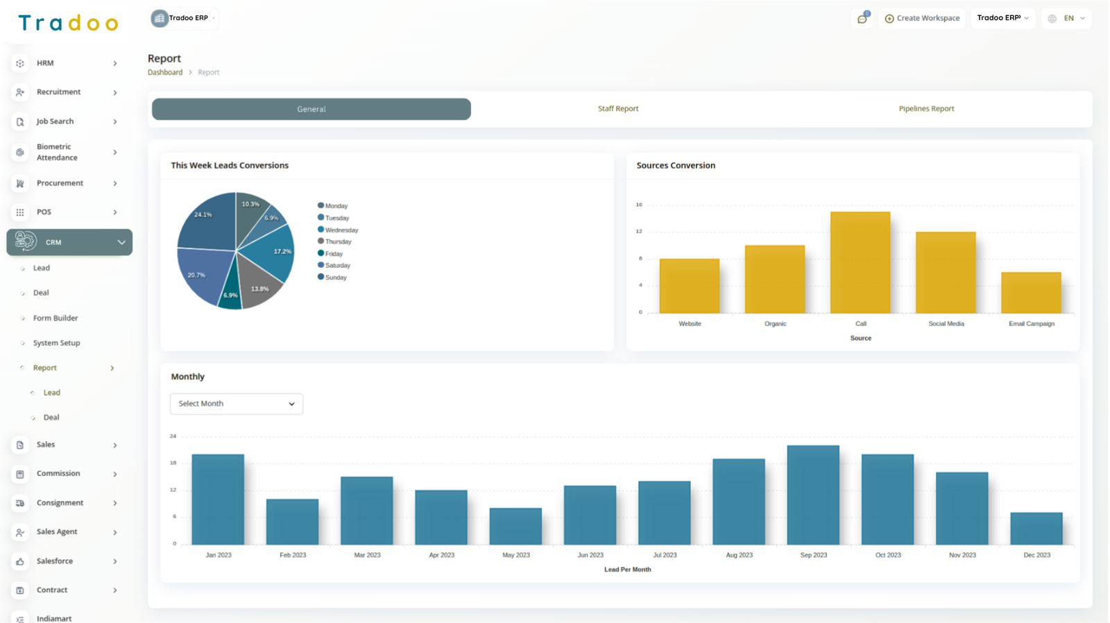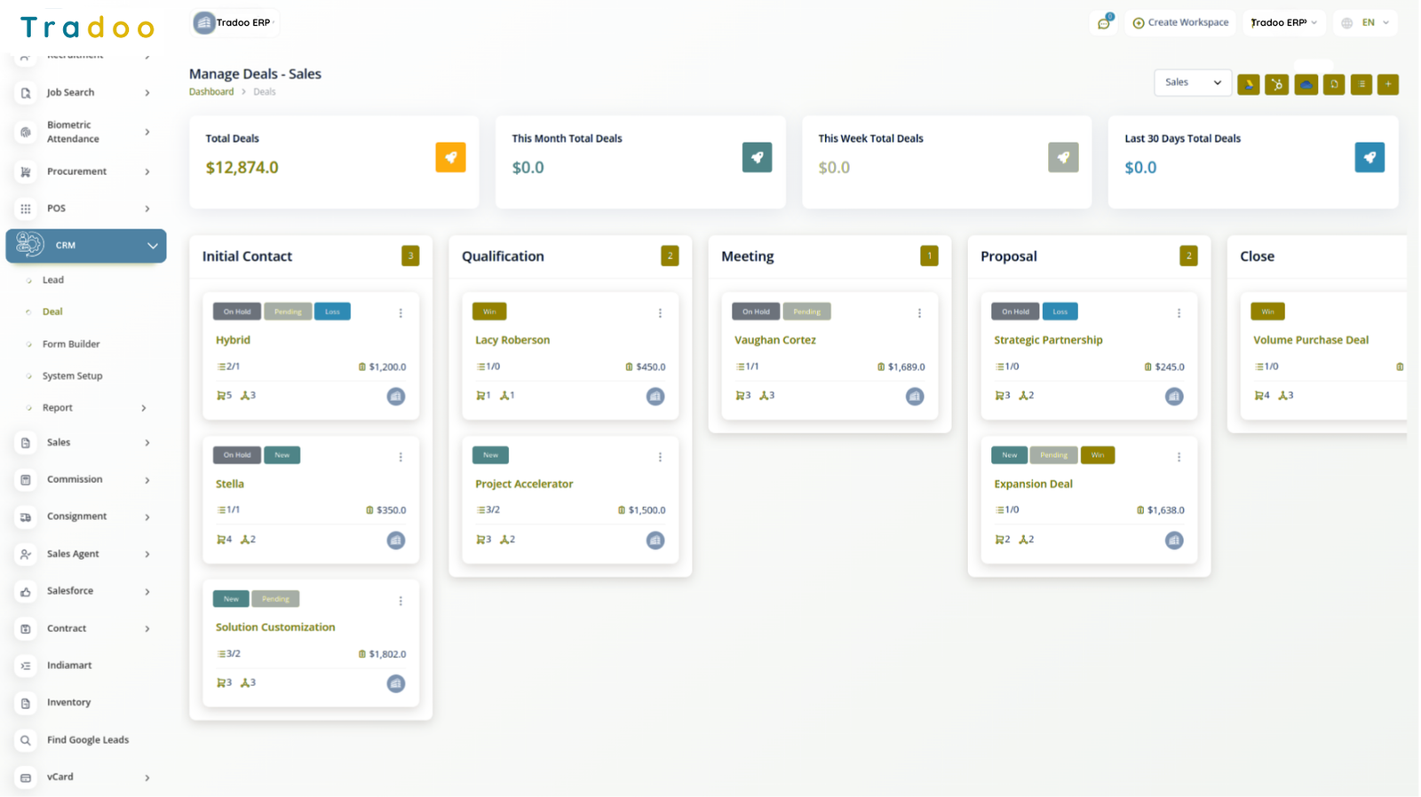 Tradoo ERP's CRM module allows you to oversee the full partner lifecycle—from onboarding and nurturing to collaboration and rewarding. Easily identify top performers and streamline your sales pipeline by focusing on the leads that matter most.