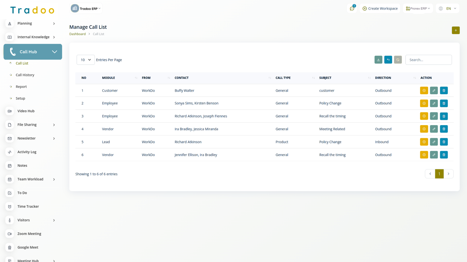 The Call Hub module is a robust communication tool that simplifies tracking and management for businesses. It enables seamless interactions with employees, customers, and clients, ensuring efficient communication and streamlined operations.