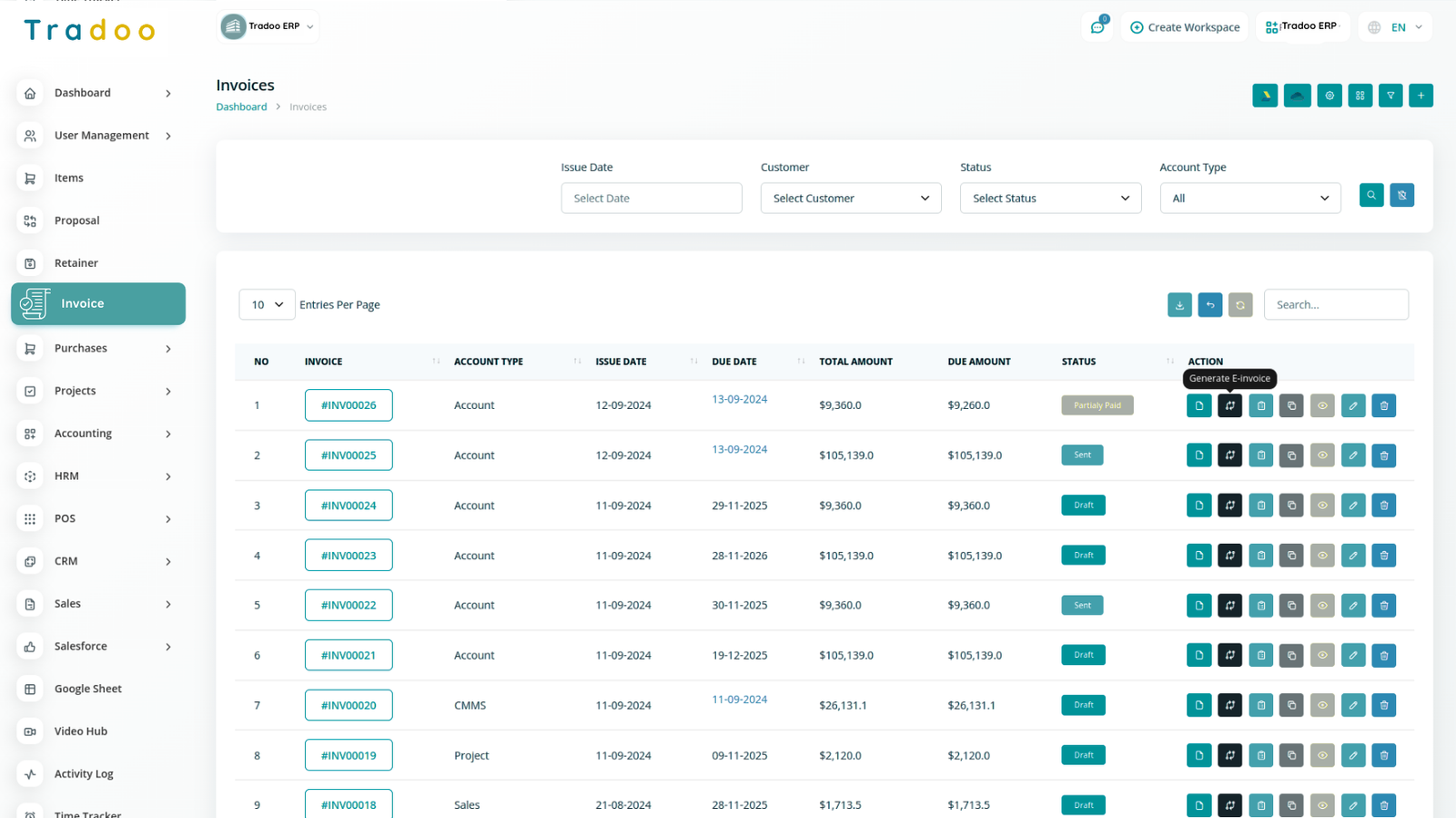 Manage all your business functions seamlessly from a single platform with Tradoo ERP.