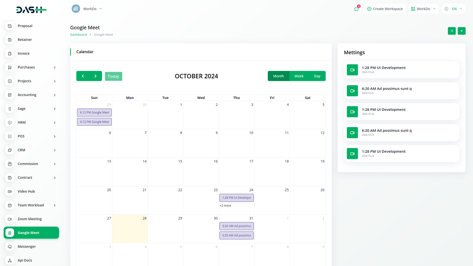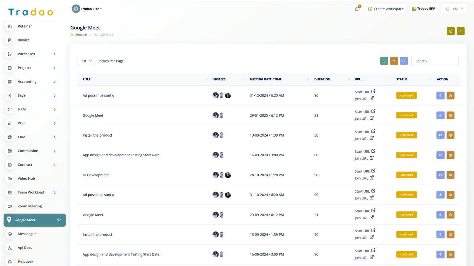 View, track, and manage all upcoming Google Meet sessions from your Tradoo ERP dashboard. Stay organized and in control of your team's schedule.