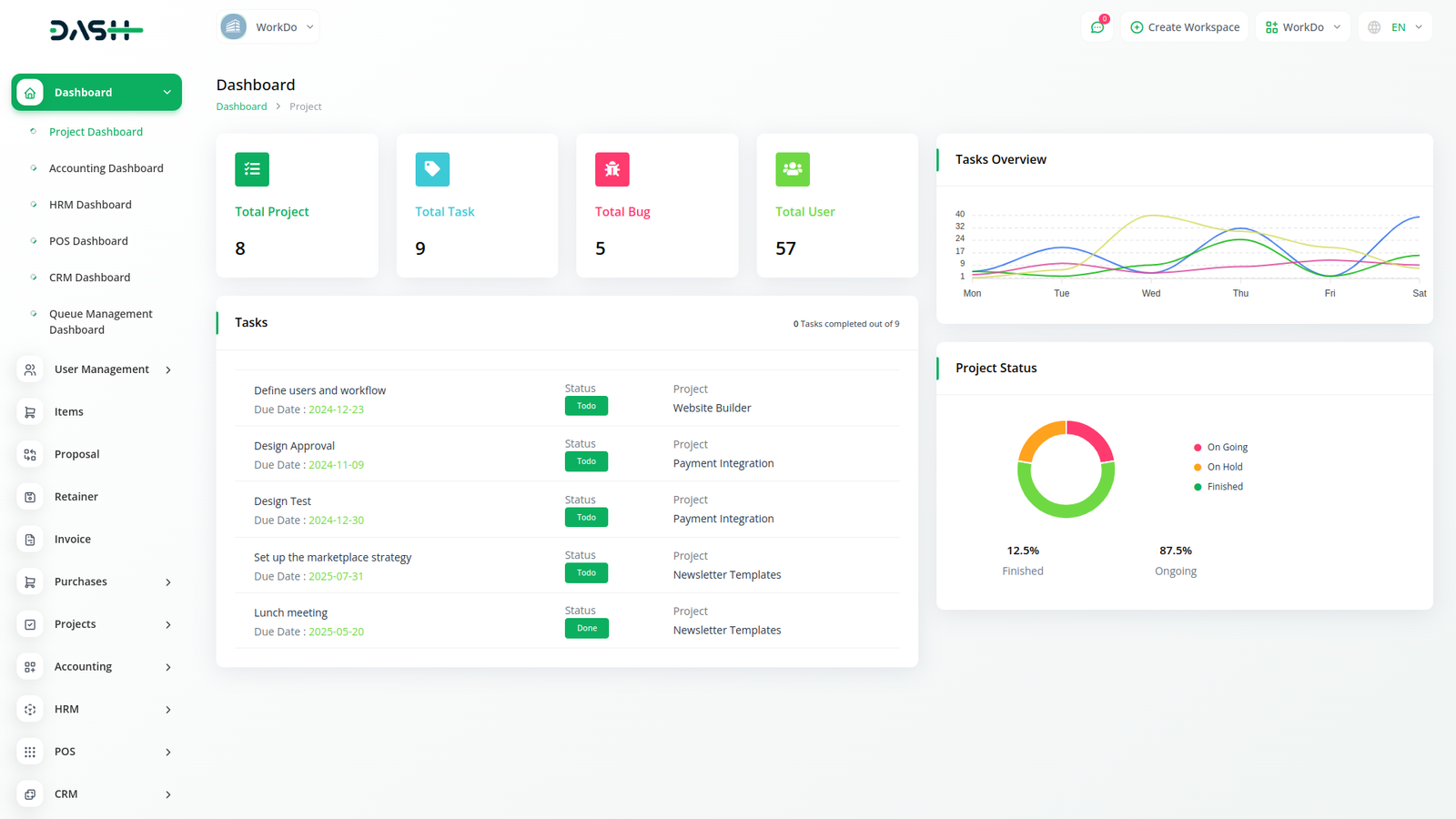 Stay in full control of your projects with a clear view of tasks, team members, deadlines, and bugs—all in one place. Get real-time visual insights into progress, and never miss a priority with a smart “Top Due Tasks” tracker. Plan smarter, execute faster, and deliver projects on time.