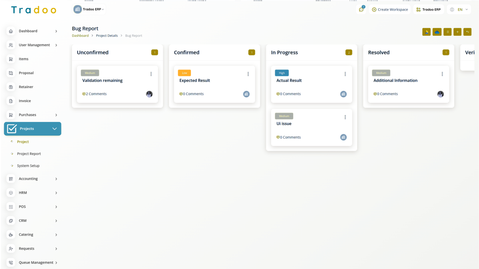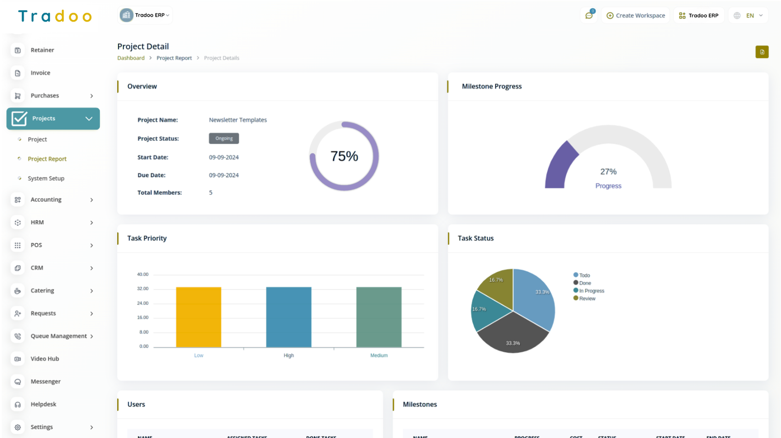 Effortless yet powerful—Tradoo ERP’s Project Manager module lets you plan, execute, and monitor projects from a centralized workspace. Create multiple projects, assign team members, collaborate with clients, and manage workflows with customizable roles and access controls. Enhance transparency, accountability, and productivity—all in one place.