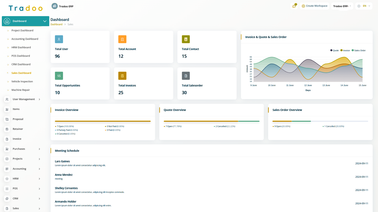 Tradoo ERP empowers you to manage every aspect of your business from a single, unified platform. With industry-specific modules tailored to your needs, streamline operations, reduce inefficiencies, and gain complete visibility across departments — from sales and finance to HR and inventory.