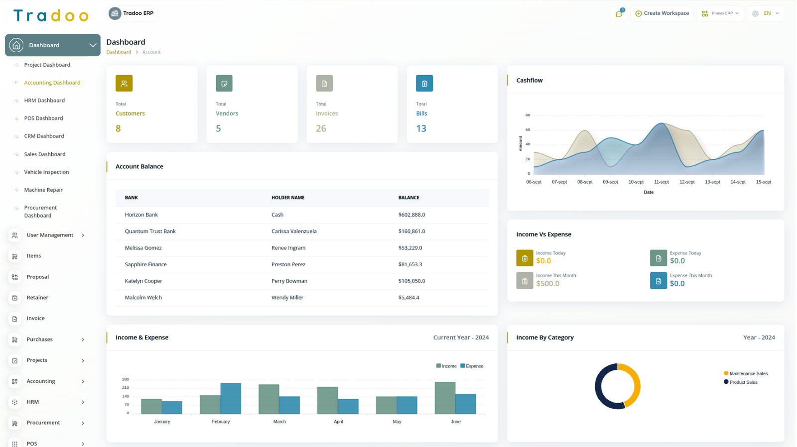 Tradoo ERP’s Single Entry Accounting module simplifies financial management for small to mid-sized businesses. Easily track income, manage transactions, and view your cash flow through clean dashboards with visual and tabular reports. Designed for clarity, speed, and smarter decisions—without the complexity of double-entry systems.