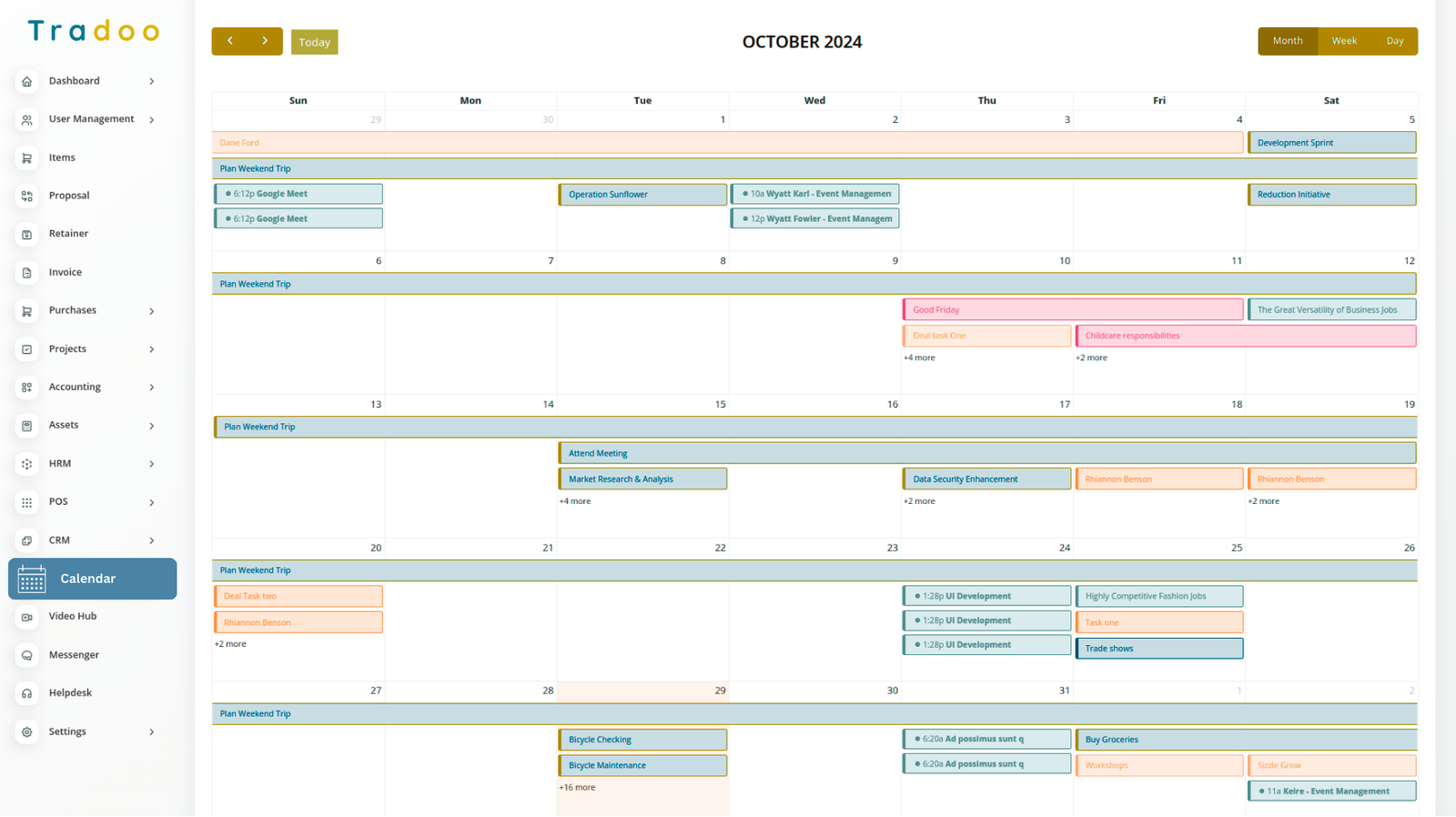 The calendar's event view simplifies tracking important meetings, ensuring you stay organized and never miss key appointments.